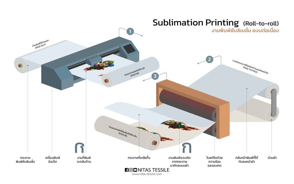 - เครื่องมือ: Printer Inkjet, เครื่องรีดร้อน (Heat Press/Calendar)