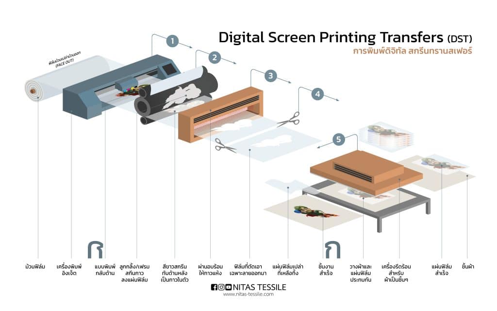 - เครื่องมือ: Digital Textile Printer, เครื่องอบไอน้ำ (Steamer), เครื่องซัก (Washer)