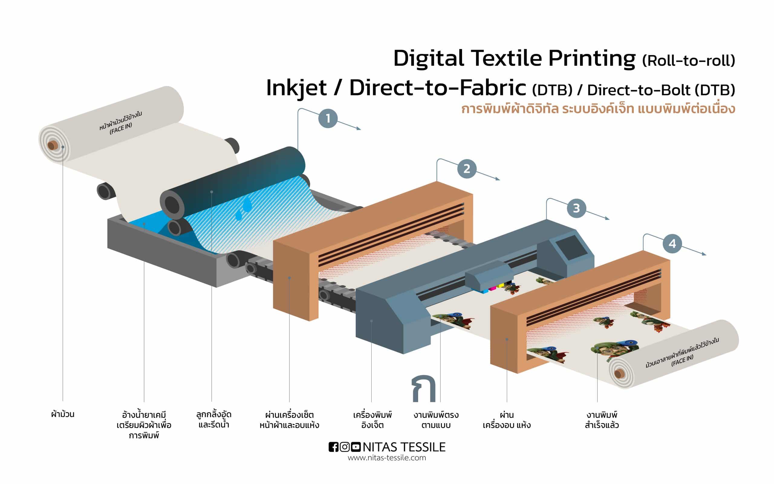 - เครื่องมือ: Digital Textile Printer, เครื่องอบไอน้ำ (Steamer), เครื่องซัก (Washer)