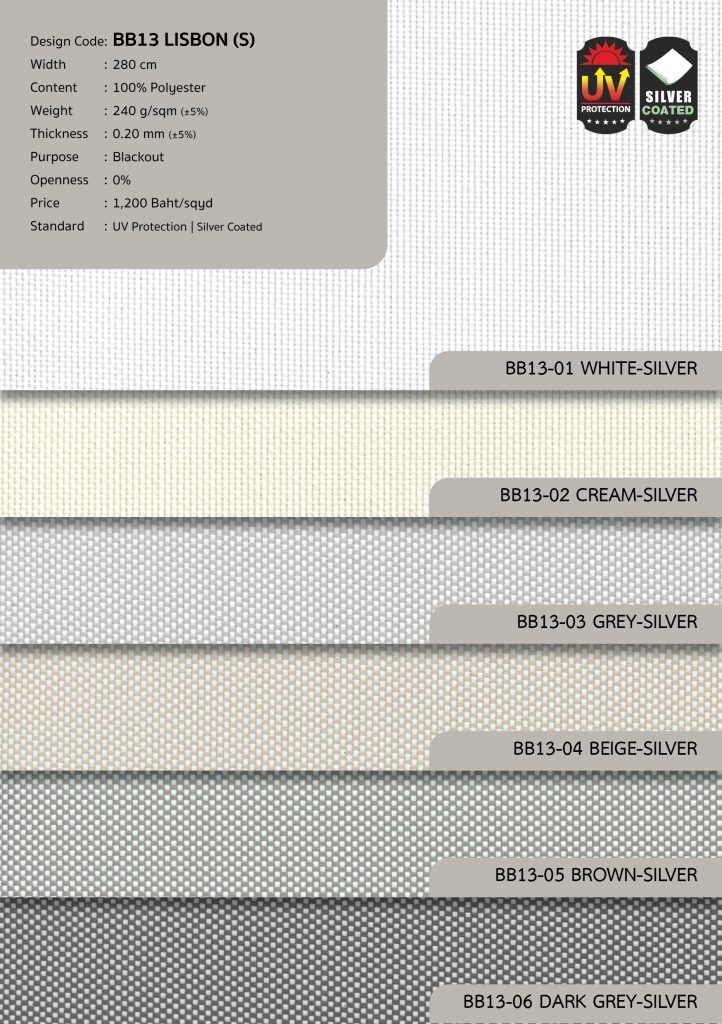 BB13-01 WHITE-SILVER, BB13-02 CREAM-SILVER, BB13-03 GREY-SILVER, BB13-04 BEIGE-SILVER, BB13-05 BROWN-SILVER, BB13-06 DARK GREY-SILVER