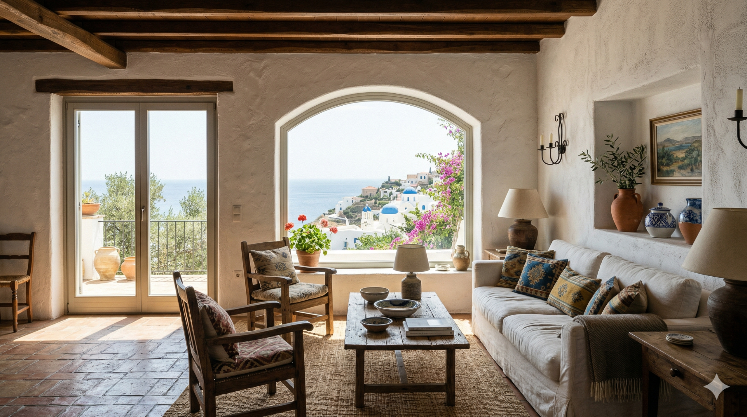 ผ่อนคลาย สดชื่น ได้กลิ่นอายทะเลและแสงแดดซุ้มโค้ง (Arch) ผนังปูนปั้น ระเบียงเปิดกว้างรับลมขาว ฟ้า น้ำเงิน เอิร์ธโทน กระเบื้องดินเผา หินธรรมชาติชายฝั่งทะเลเมดิเตอร์เรเนียน (อิตาลี, สเปน, กรีซ)