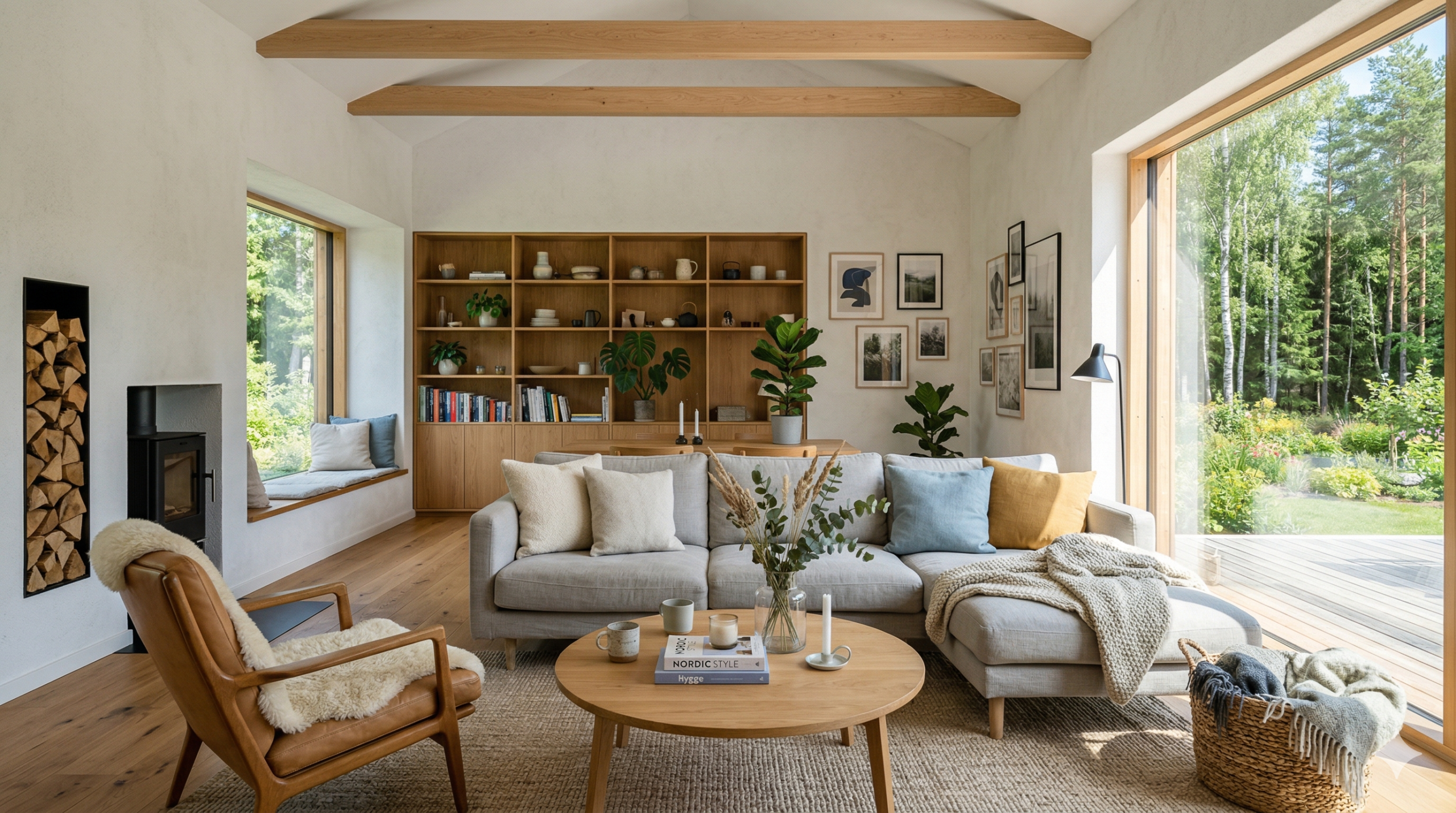 สแกนดิเนเวียน Scandinavianอบอุ่น เรียบง่าย ใกล้ชิดธรรมชาติผสมผสานสีขาว เฟอร์นิเจอร์ไม้ แสงธรรมชาติขาว ครีม เทา น้ำตาล อ่อน ไม้ ผ้าขนสัตว์สแกนดิเนเวีย
